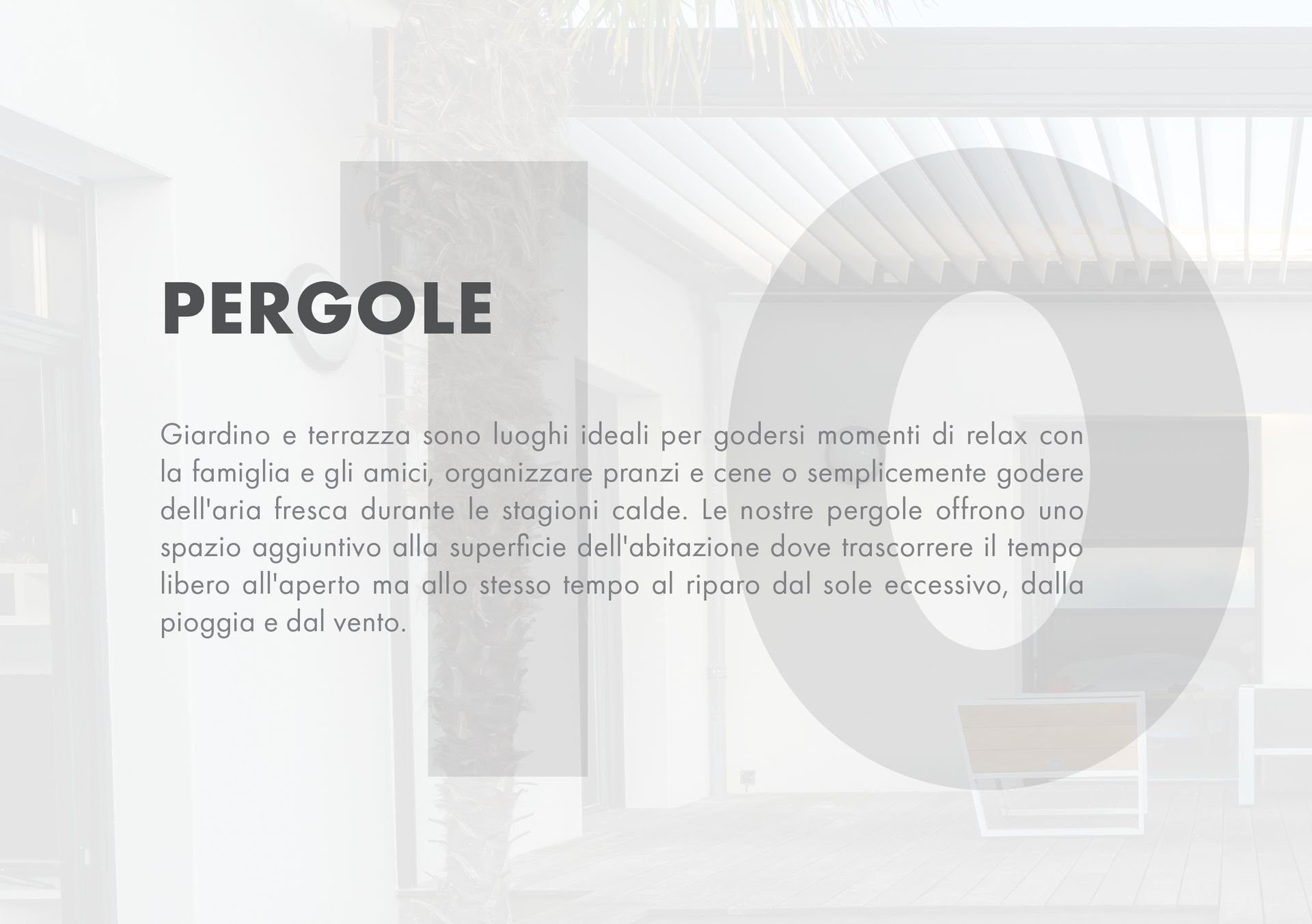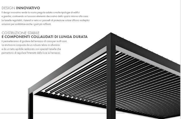 Progettate con tecnologie all’avanguardia e realizzate in impianti altamente specializzati, le nostre pergole si adattano perfettamente a ogni tipo di edificio, donando stile e funzionalità agli spazi esterni.