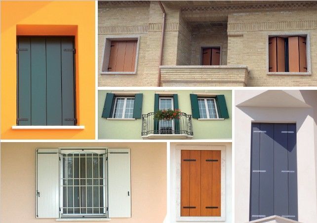 - Persiane: disponibili in versioni fisse, a battente, a libro o scorrevoli, in alluminio, PVC o legno.